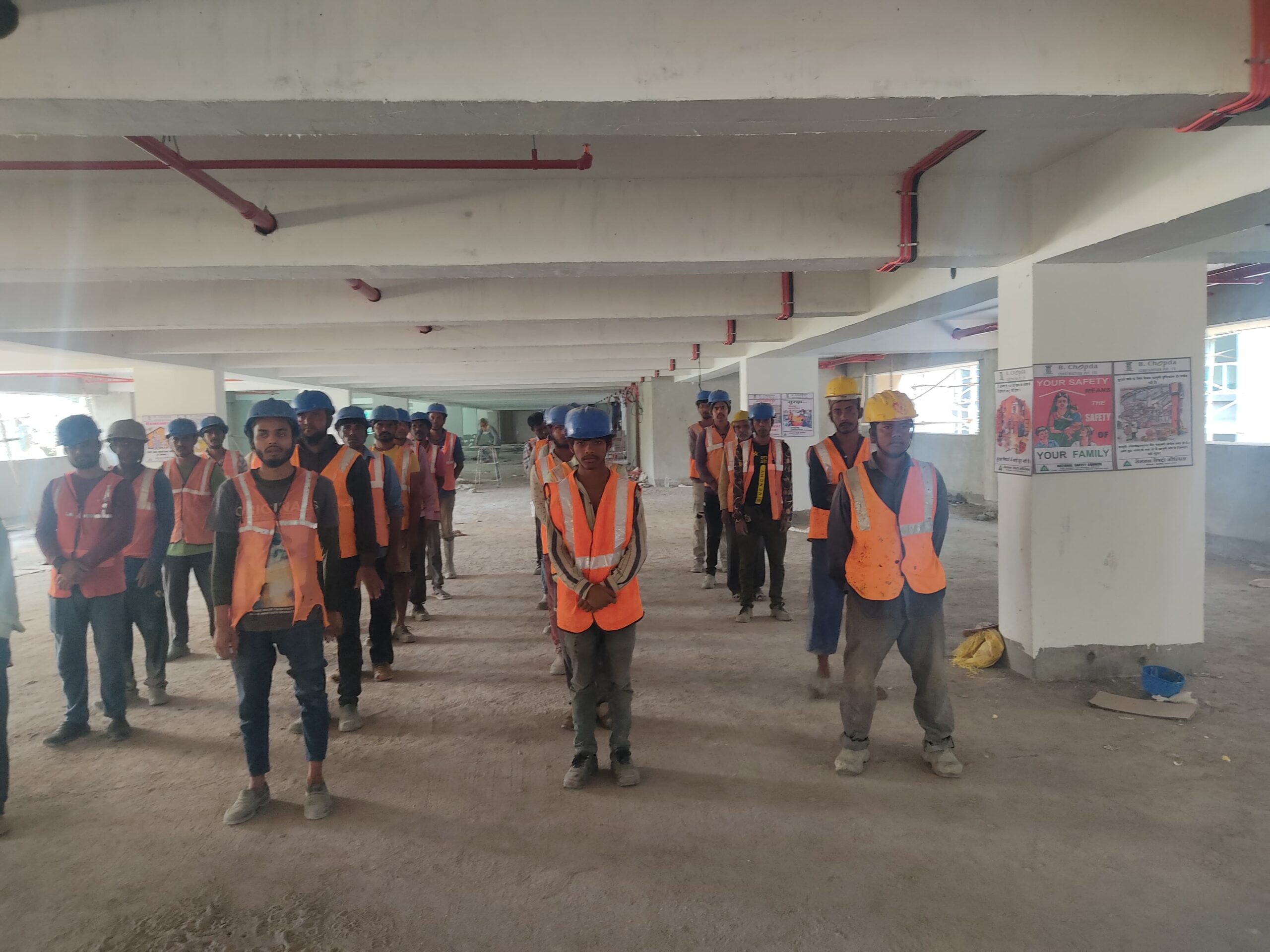 Workers on site undergo extensive training. This training procedure aims to assess and mitigate the risks associated with working at heights to ensure the safety of our workers which includes ensuring correct scaffold setup, providing ladders, and conducting regular inspections of all elevated equipment. Additionally, the training addresses safety protocols for tasks involving welding, which includes managing heat hazards, as well as working with electrical systems and operating machinery onsite. Furthermore, it emphasizes ensuring safety during the assembly of structural steel at construction sites. We also supply essential fall protection PPEs (Personal Protective Equipment) like safety helmets and safety harnesses.